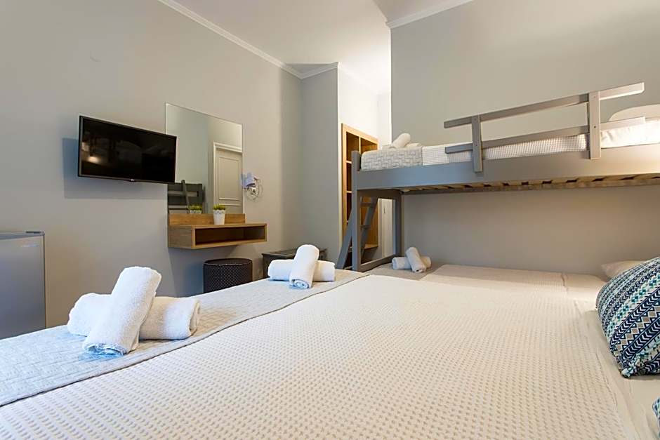 This family room features a tile/marble floor, air conditioning, mini fridge, free WiFi, hairdryer, memory foam mattresses and satellite TV.