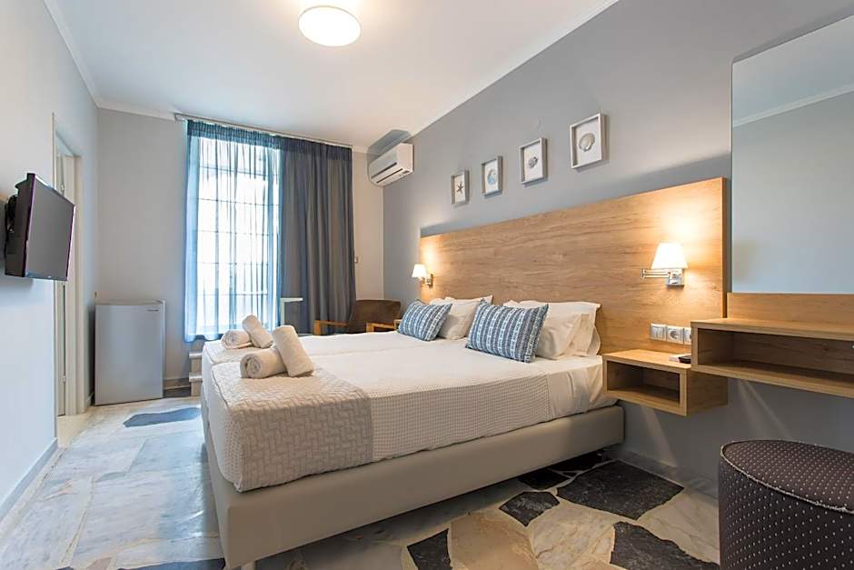 Superior Luxurious with Sea view is 538 square feet and includes a king-size bed 150-183 width plus a sofa bed plus balcony, satellite tv , hairdryer, ironing set, safe, bathrobes, and slippers.